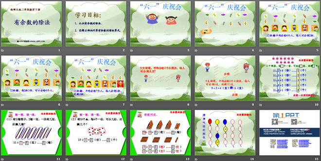关键词:有余数的除法课件PPT,西师大版二年级下册数学PPT课件下载,二年级数学幻灯片课件下载,有余数的除法PPT课件下载,.PPT格式