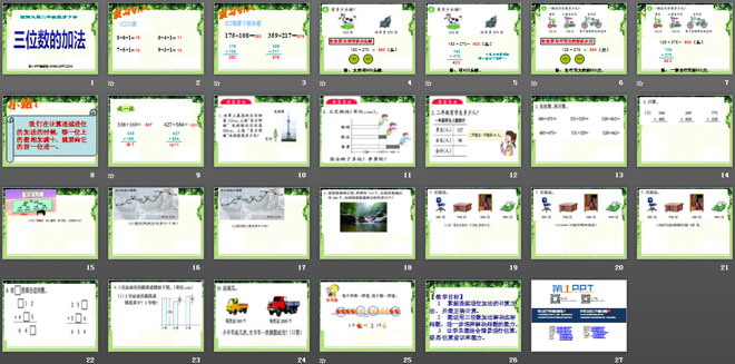 关键词:三位数的加减法课件PPT,三位数的加法课件PPT,西师大版二年级下册数学PPT课件下载,二年级数学幻灯片课件下载,三位数的加减法PPT课件下载,三位数的加法PPT课件下载,.PPT格式