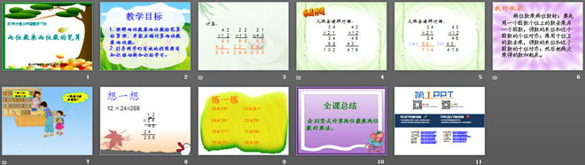 1. 理解两位数乘两位数的笔算的算理,并能正确计算两位数乘两位数。
