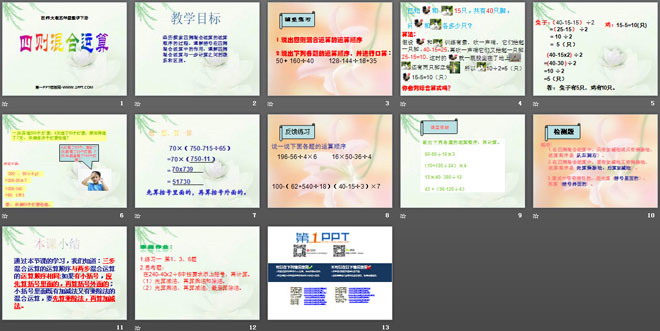 关键词:四则混合运算课件PPT,西师大版四年级下册数学PPT课件下载,四年级数学幻灯片课件下载,四则混合运算PPT课件下载,.PPT格式