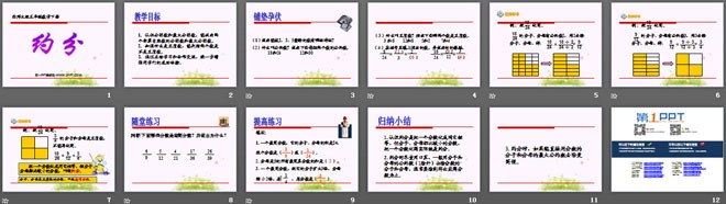 关键词:分数课件PPT,约分课件PPT,西师大版五年级下册数学PPT课件下载,五年级数学幻灯片课件下载,分数PPT课件下载,约分PPT课件下载,.PPT格式