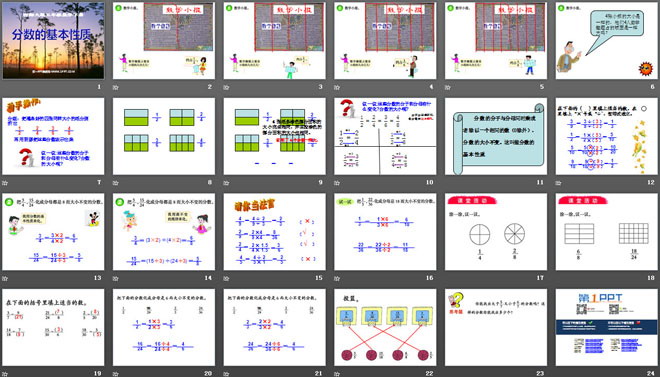关键词:分数的基本性质课件PPT,分数课件PPT,西师大版五年级下册数学PPT课件下载,五年级数学幻灯片课件下载,分数的基本性质PPT课件下载,分数PPT课件下载,.PPT格式