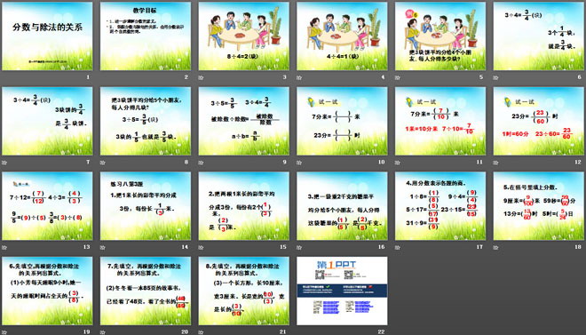 关键词:分数课件PPT,分数与除法的关系课件PPT,西师大版五年级下册数学PPT课件下载,五年级数学幻灯片课件下载,分数PPT课件下载,分数与除法的关系PPT课件下载,.PPT格式