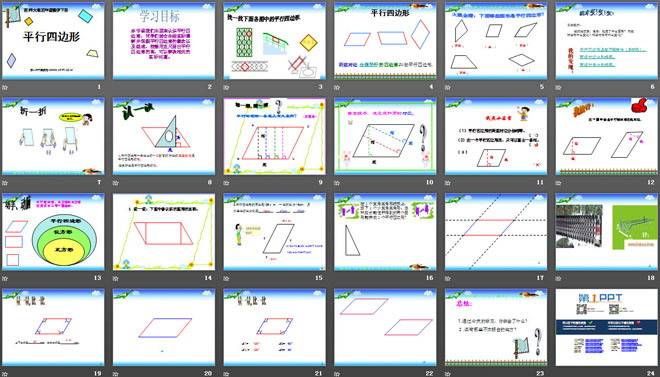 关键词:平行四边形和梯形课件PPT,平行四边形课件PPT,西师大版四年级下册数学PPT课件下载,四年级数学幻灯片课件下载,平行四边形和梯形PPT课件下载,平行四边形PPT课件下载,.PPT格式