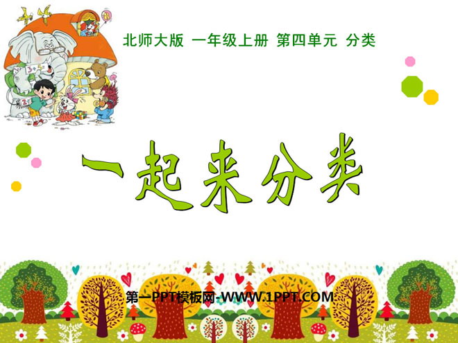 关键词:一起来分类课件,北师大版一年级上册数学PPT课件下载,一年级数学幻灯片课件下载,一起来分类PPT课件下载,.PPT格式;