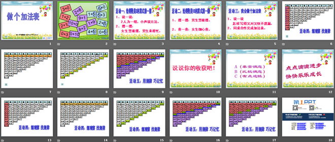 关键词:做个加法表课件,北师大版一年级上册数学PPT课件下载,一年级数学幻灯片课件下载,做个加法表PPT课件下载,.PPT格式;