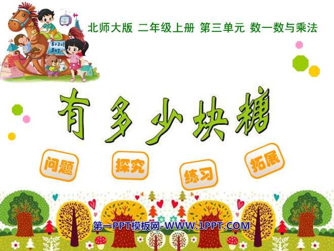关键词:有多少块糖课件,北师大版二年级上册数学PPT课件下载,二年级数学幻灯片课件下载,有多少块糖PPT课件下载,.PPT格式;