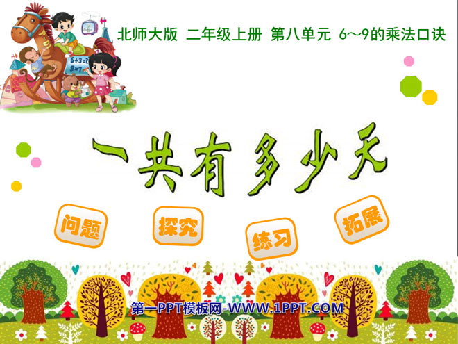 关键词:6~9的乘法口诀课件,一共有多少天课件,北师大版二年级上册数学PPT课件下载,二年级数学幻灯片课件下载,6~9的乘法口诀PPT课件下载,一共有多少天PPT课件下载,.PPT格式;