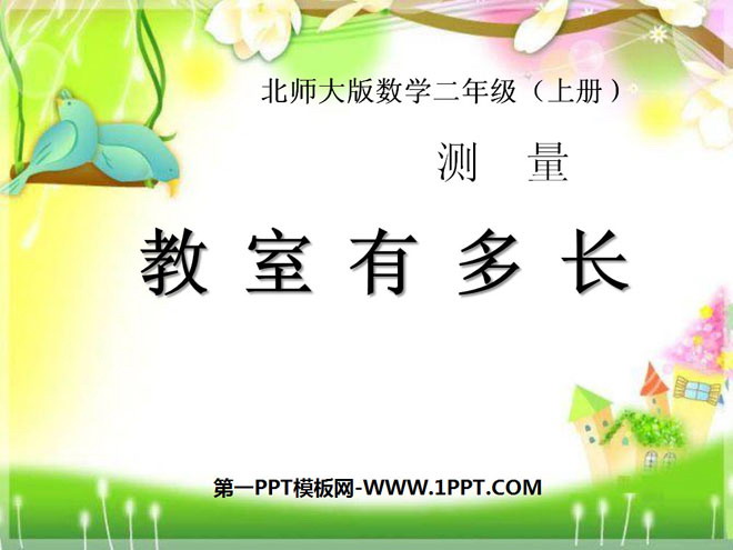 关键词:测量课件,教室有多长课件,北师大版二年级上册数学PPT课件下载,二年级数学幻灯片课件下载,测量PPT课件下载,教室有多长PPT课件下载,.PPT格式;