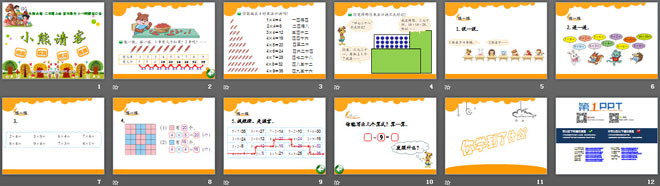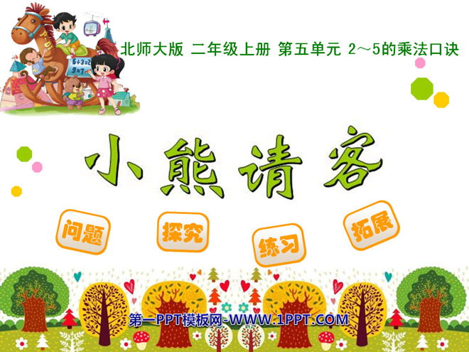 关键词:2~5的乘法口诀课件,小熊请客课件,北师大版二年级上册数学PPT课件下载,二年级数学幻灯片课件下载,2~5的乘法口诀PPT课件下载,小熊请客PPT课件下载,.PPT格式;