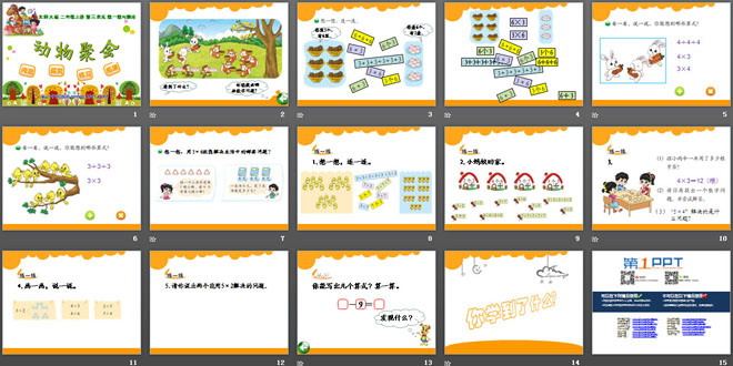 关键词:数一数与乘法课件,动物聚会课件,北师大版二年级上册数学PPT课件下载,二年级数学幻灯片课件下载,数一数与乘法PPT课件下载,动物聚会PPT课件下载,.PPT格式;