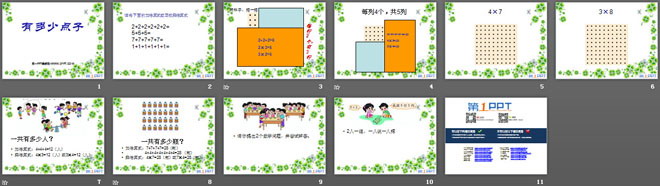 关键词:数一数与乘法课件,有多少点子课件,北师大版二年级上册数学PPT课件下载,二年级数学幻灯片课件下载,数一数与乘法PPT课件下载,有多少点子PPT课件下载,.PPT格式;