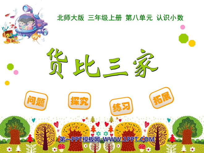 关键词:认识小数课件,货比三家课件,北师大版三年级上册数学PPT课件下载,三年级数学幻灯片课件下载,认识小数PPT课件下载,货比三家PPT课件下载,.PPT格;