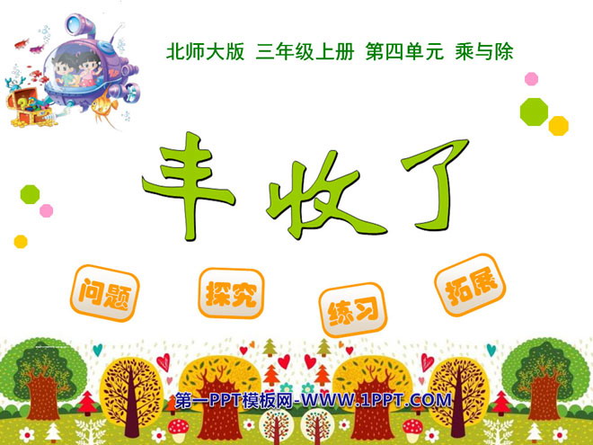 关键词:乘与除课件,丰收了课件,北师大版三年级上册数学PPT课件下载,三年级数学幻灯片课件下载,乘与除PPT课件下载,丰收了PPT课件下载,.PPT格式;