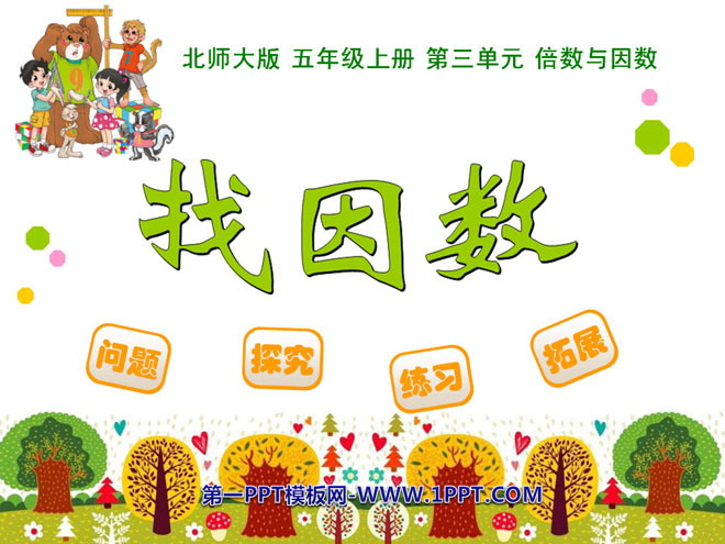 关键词:倍数与因数课件,找因数课件,北师大版五年级上册数学PPT课件下载,五年级数学幻灯片课件下载,倍数与因数PPT课件下载,找因数PPT课件下载,.PPT格式;