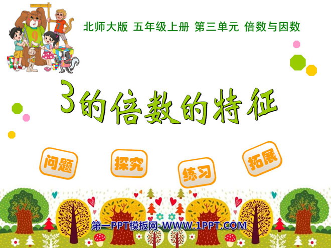 关键词:倍数与因数课件,3的倍数的特征课件,北师大版五年级上册数学PPT课件下载,五年级数学幻灯片课件下载,倍数与因数PPT课件下载,3的倍数的特征PPT课件下载,.PPT格式;