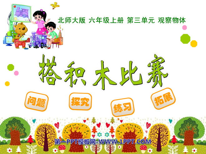 关键词:观察物体课件,搭积木比赛课件,北师大版六年级上册数学PPT课件下载,六年级数学幻灯片课件下载,观察物体PPT课件下载,搭积木比赛PPT课件下载,.PPT格式;