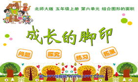 关键词:组合图形的面积课件,公顷平方千米课件,北师大版五年级上册数学PPT课件下载,五年级数学幻灯片课件下载,组合图形的面积PPT课件下载,公顷平方千米PPT课件下载,.PPT格式;