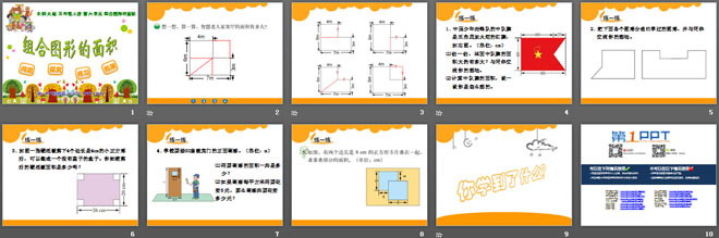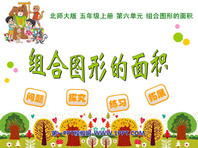 关键词:组合图形的面积课件,北师大版五年级上册数学PPT课件下载,五年级数学幻灯片课件下载,组合图形的面积PPT课件下载,.PPT格式;
