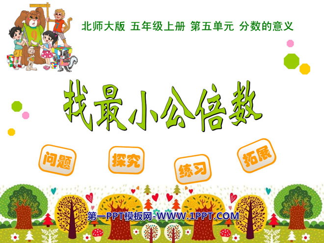 关键词:分数的意义课件,找最小公倍数课件,北师大版五年级上册数学PPT课件下载,五年级数学幻灯片课件下载,分数的意义PPT课件下载,找最小公倍数PPT课件下载,.PPT格式;
