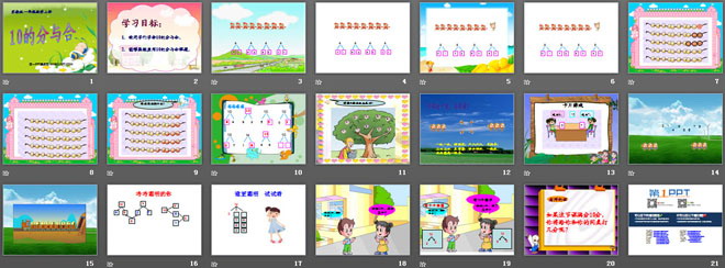 关键词:分与合课件,10的分与合课件,苏教版一年级上册数学PPT课件下载,一年级数学幻灯片课件下载,分与合PPT课件下载,10的分与合PPT课件下载,.PPT格式;
