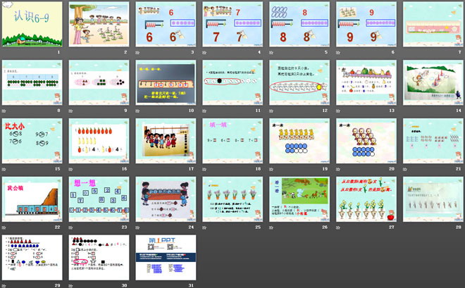关键词:认识10以内的数课件,认识6-9课件,苏教版一年级上册数学PPT课件下载,一年级数学幻灯片课件下载,认识10以内的数PPT课件下载,认识6-9PPT课件下载,.PPT格式;