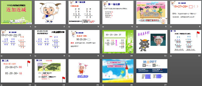 关键词:100以内的加法和减法课件,连加连减课件,苏教版二年级上册数学PPT课件下载,二年级数学幻灯片课件下载,100以内的加法和减法PPT课件下载,连加连减PPT课件下载,.PPT格式;