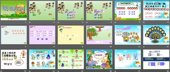 关键词:10以内的加法和减法课件,得数是10的加法与相应的减法课件,苏教版一年级上册数学PPT课件下载,一年级数学幻灯片课件下载,10以内的加法和减法PPT课件下载,得数是10的加法与相应的减法PPT课件下载,.PPT格式;