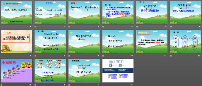 关键词:表内乘法和表内除法课件,连乘连除乘除混合运算课件,苏教版二年级上册数学PPT课件下载,二年级数学幻灯片课件下载,表内乘法和表内除法PPT课件下载,连乘连除乘除混合运算PPT课件下载,.PPT格式;