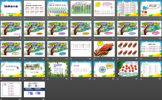 关键词:表内乘法和表内除法课件,8的乘法口诀课件,苏教版二年级上册数学PPT课件下载,二年级数学幻灯片课件下载,表内乘法和表内除法PPT课件下载,8的乘法口诀PPT课件下载,.PPT格式;