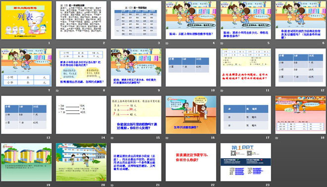 关键词:解决问题的策略课件,列表课件,苏教版三年级上册数学PPT课件下载,三年级数学幻灯片课件下载,解决问题的策略PPT课件下载,列表PPT课件下载,.PPT格式;