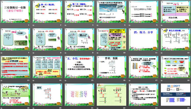 关键词:两三位数除以一位数课件,三位数除以一位数课件,苏教版三年级上册数学PPT课件下载,三年级数学幻灯片课件下载,两三位数除以一位数PPT课件下载,三位数除以一位数PPT课件下载,.PPT格式;