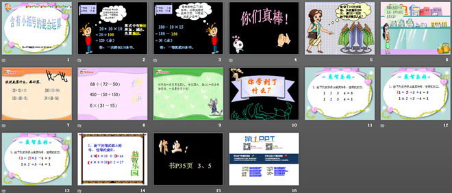 关键词:含有小括号的混合运算课件,苏教版四年级上册数学PPT课件下载,四年级数学幻灯片课件下载,含有小括号的混合运算PPT课件下载,.PPT格式;