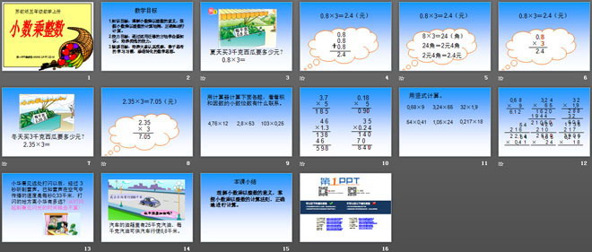 关键词:小数乘法和除法课件,小数乘整数课件,苏教版五年级上册数学PPT课件下载,五年级数学幻灯片课件下载,小数乘法和除法PPT课件下载,小数乘整数PPT课件下载,.PPT格式;