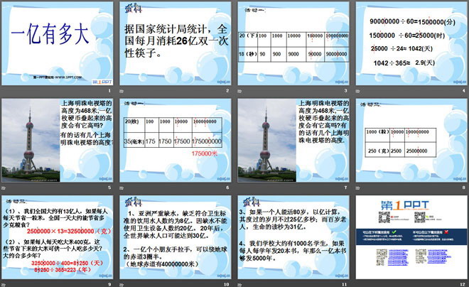关键词:一亿有多大课件,苏教版四年级上册数学PPT课件下载,四年级数学幻灯片课件下载,一亿有多大PPT课件下载,.PPT格式;
