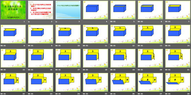 关键词:长方体和正方体课件,长方体和正方体的表面积课件,苏教版六年级上册数学PPT课件下载,六年级数学幻灯片课件下载,长方体和正方体PPT课件下载,长方体和正方体的表面积PPT课件下载,.PPT格式;