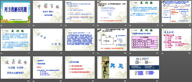 关键词:列方程解决实际问题课件,方程课件,苏教版六年级上册数学PPT课件下载,六年级数学幻灯片课件下载,列方程解决实际问题PPT课件下载,方程PPT课件下载,.PPT格式;