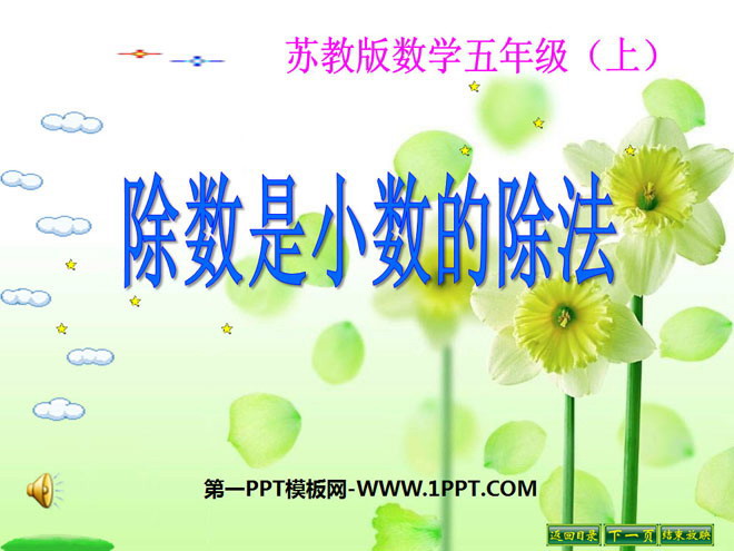 关键词:小数乘法和除法课件,除数是小数的除法课件,苏教版五年级上册数学PPT课件下载,五年级数学幻灯片课件下载,小数乘法和除法PPT课件下载,除数是小数的除法PPT课件下载,.PPT格式;