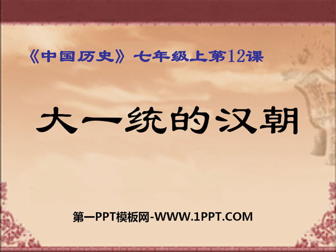 关键词:统一国家的建立教学课件,大一统的汉朝教学课件,人教版七年级上册历史PPT课件下载,七年级历史幻灯片课件下载,统一国家的建立PPT课件下载,大一统的汉朝PPT课件下载,.PPT格式;