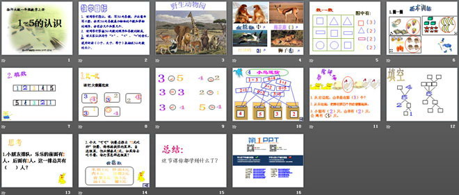关键词:10以内数的认识和加减法课件,1-5的认识课件,西师大版一年级上册数学PPT课件下载,一年级数学幻灯片课件下载,10以内数的认识和加减法PPT课件下载,1-5的认识PPT课件下载,.PPT格式;