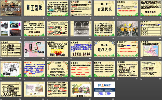 秦朝灭亡以后,项羽和刘邦领导的战争性质的变化,使学生养成初步比较战争性质的能力。