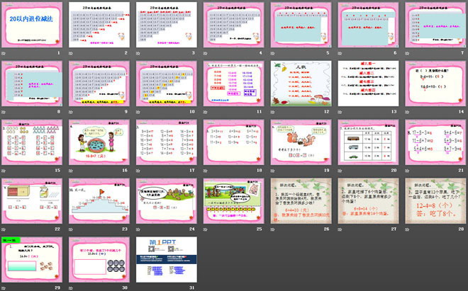 关键词:20以内的退位减法课件,西师大版一年级上册数学PPT课件下载,一年级数学幻灯片课件下载,20以内的退位减法PPT课件下载,.PPT格式;