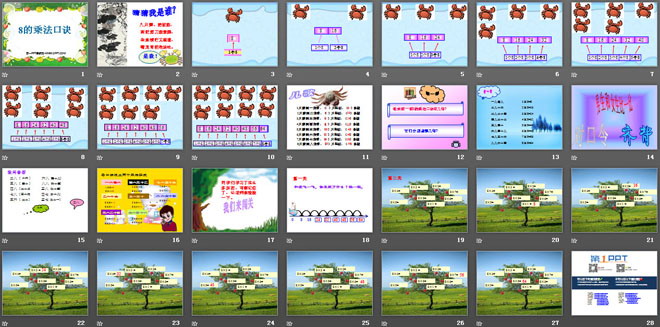关键词:表内乘法课件,8的乘法口诀课件,西师大版二年级上册数学PPT课件下载,二年级数学幻灯片课件下载,表内乘法PPT课件下载,8的乘法口诀PPT课件下载,.PPT格式;