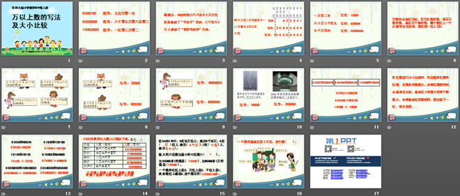关键词:万以上数的认识课件,万以上数的写法及大小比较课件,西师大版四年级上册数学PPT课件下载,四年级数学幻灯片课件下载,万以上数的认识PPT课件下载,万以上数的写法及大小比较PPT课件下载,.PPT格式;