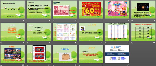 关键词:年月日课件,西师大版三年级上册数学PPT课件下载,三年级数学幻灯片课件下载,年月日PPT课件下载,.PPT格式;