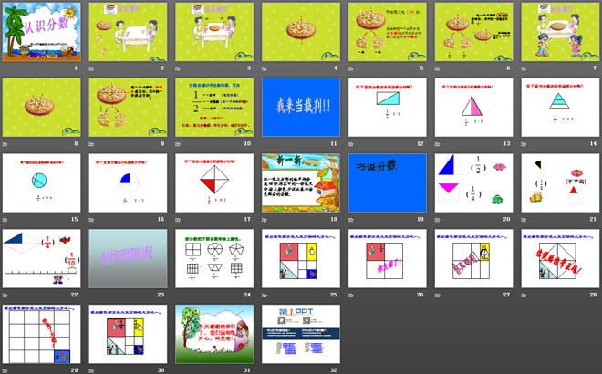 关键词:分数的初步认识课件,认识分数课件,西师大版三年级上册数学PPT课件下载,三年级数学幻灯片课件下载,分数的初步认识PPT课件下载,认识分数PPT课件下载,.PPT格式;