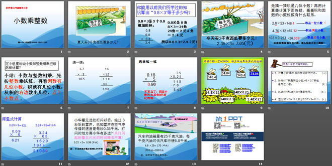关键词:小数乘法课件,小数乘整数课件,西师大版五年级上册数学PPT课件下载,五年级数学幻灯片课件下载,小数乘法PPT课件下载,小数乘整数PPT课件下载,.PPT格式;