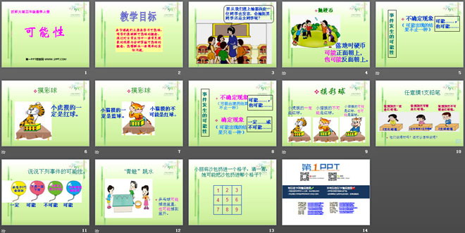 关键词:不确定现象课件,可能性课件,西师大版四年级上册数学PPT课件下载,四年级数学幻灯片课件下载,不确定现象PPT课件下载,可能性PPT课件下载,.PPT格式;
