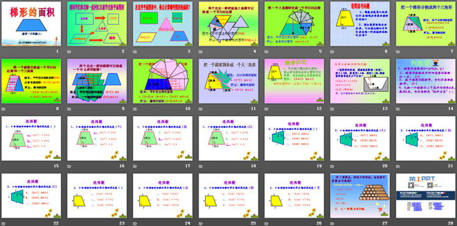 关键词:多边形的面积课件,梯形的面积课件,西师大版五年级上册数学PPT课件下载,五年级数学幻灯片课件下载,多边形的面积PPT课件下载,梯形的面积PPT课件下载,.PPT格式;