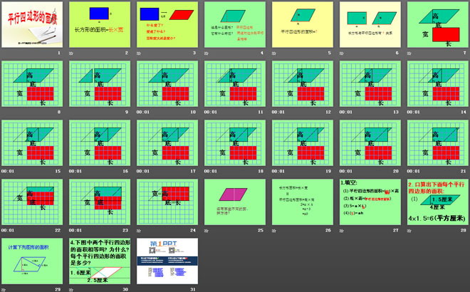 关键词:多边形面积的计算课件,平行四边形的面积课件,西师大版五年级上册数学PPT课件下载,五年级数学幻灯片课件下载,多边形面积的计算PPT课件下载,平行四边形的面积PPT课件下载,.PPT格式;